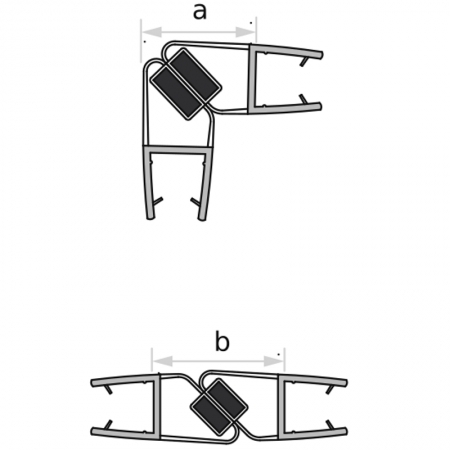 These are co-extruded Magnetic Shower Door Seal strips for 90, 135 or 180 degree glass-to-glass door closure applications to prevent water escaping. The seals are made of translucent PVC with black or white magnet profiles. Working in pairs for straight or curved shower doors, the seals simply push into the edge of shower doors. Fit square, sliding, corner entry type shower enclosures and will accommodate different glass thickness.